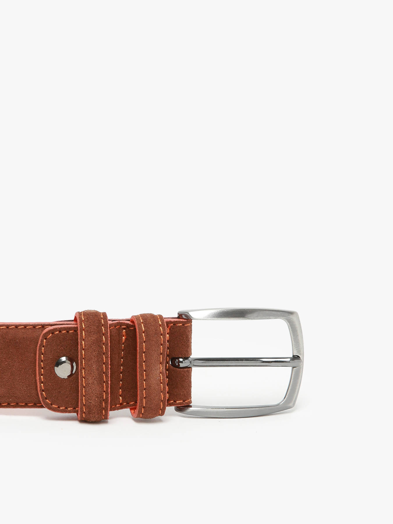 Ceinture camel pour homme en croute de cuir, fabriquée en Italie. Coutures contrastées dans un orange discret. Idéale à porter tous les jours avec un style du plus classique au plus urbain.